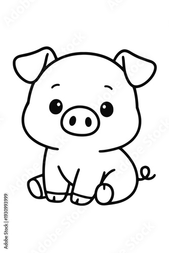 © Sai-man, Fototapeta premium Cute pig character smiling happily in a fun and playful style