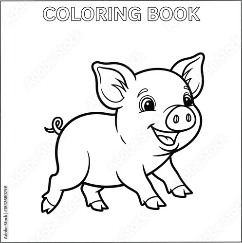 Fototapeta premium Cute Pig Coloring Book Page for Kids Activity