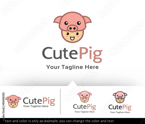 © gunaonedesign, Fototapeta premium Cute Pig Logo Design Template