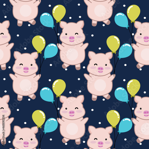 Naklejka premium cute pig seamless pattern background, vector illustration