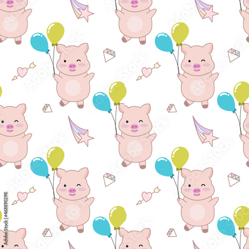 © patcharawan, Obraz premium cute pig seamless pattern background, vector illustration