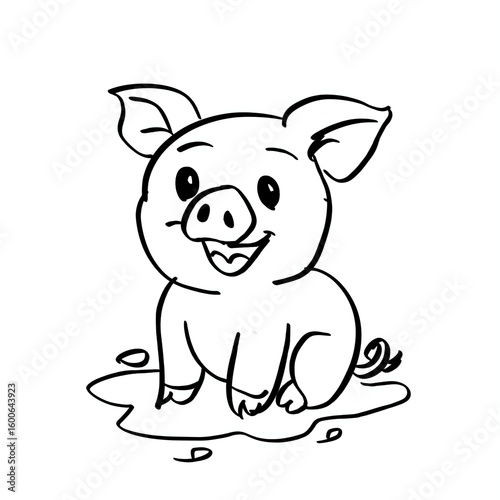 © Jiachi, Fototapeta premium Cute Pig Sitting in Mud Coloring Page