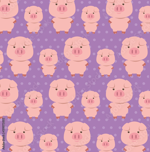© Gstudio, Obraz premium cute pigs father and son characters pattern vector illustration design