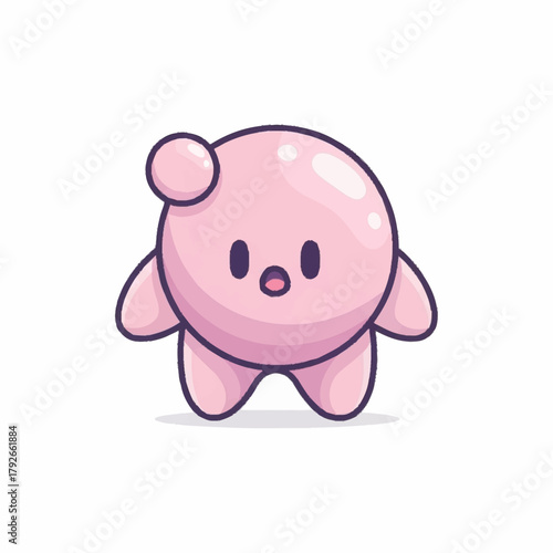 © Achmad, Naklejka premium Cute Pink Blob Character with Round Body and Small Head Protuberance.
