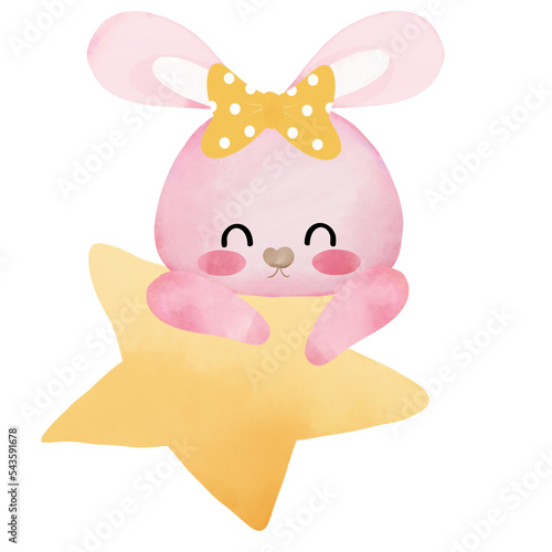 © Natcha, Naklejka premium cute pink bunny, adorable rabbit girl, smile, happy, heart, gift, give