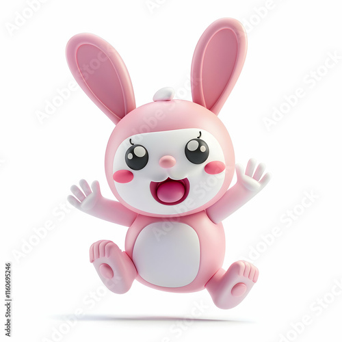 Fototapeta premium Cute Pink Bunny Character with Happy Expression and Playful Pose
