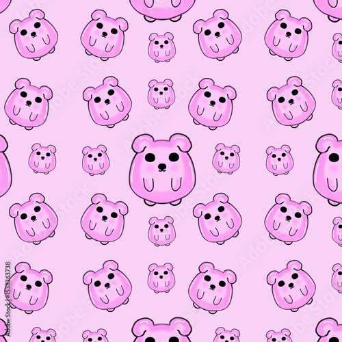 Fototapeta premium Cute pink cartoon character image, cute fabric pattern vector image