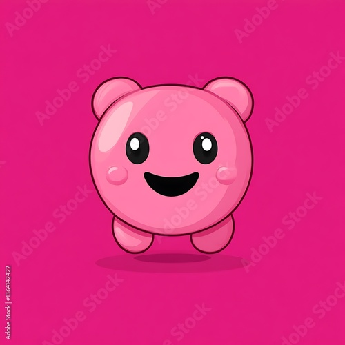Fototapeta premium Cute Pink Cartoon Character Smiling on Pink Background for Kids