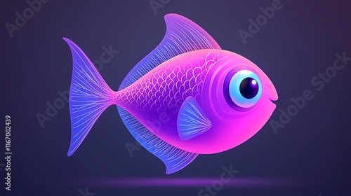 Fototapeta premium Cute pink cartoon fish with big eyes, isolated on dark background.