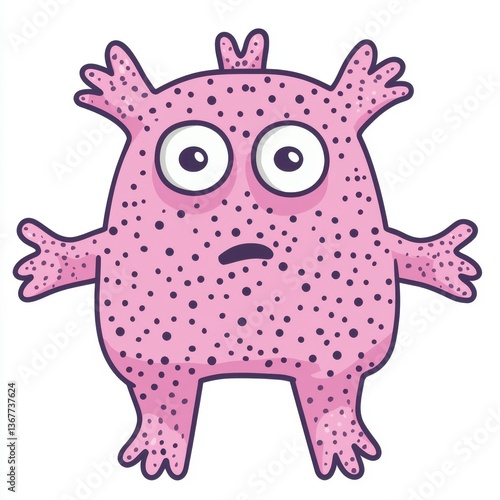 © siriwan, Naklejka premium Cute Pink Cartoon Monster with Purple Spots Illustration