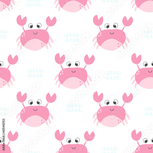 Obraz premium Cute pink crab vector seamless pattern. Sea life childish flat cartoon...