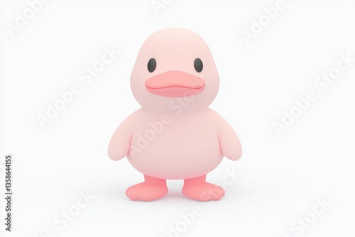© danadesa, Naklejka premium Cute pink duck figurine. A simple, stylized 3D rendered duck, light pink in color, with small black eyes and a light peach beak, standing upright on a plain white background
