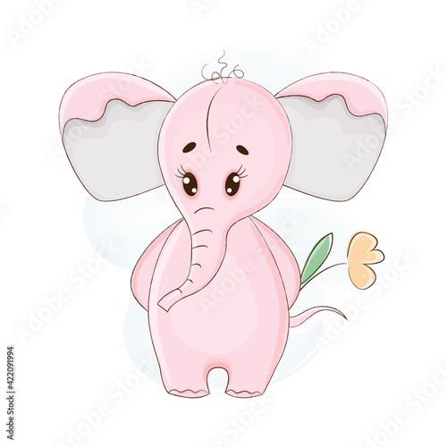 Fototapeta premium Cute pink elephant in cartoon style. Vector illustration.
