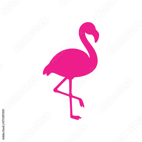Fototapeta premium Cute pink flamingo silhouette vector flat illustration design. Cute flamingo icon.