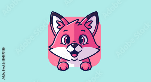 Obraz premium Cute pink fox cartoon character smiling with joy and happiness.