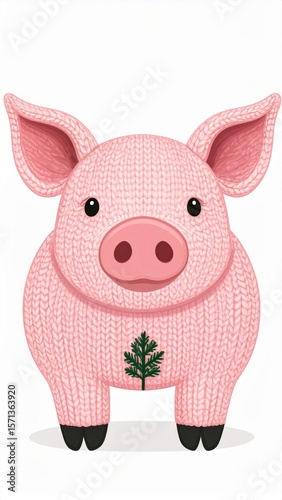 © UtkarshBay, Naklejka premium Cute Pink Knitted Pig Illustration