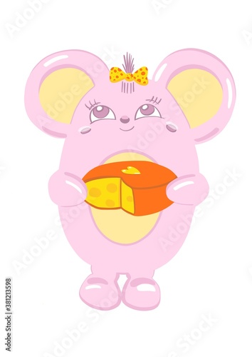 © Kisandaya, Obraz premium cute pink mouse with cheese