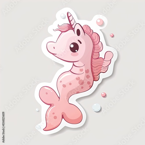 © Ahmad M., Fototapeta premium Cute pink unicorn fish sticker illustration generated with AI