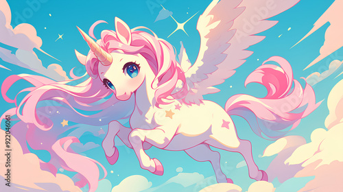 Obraz premium cute pinky unicorn colorful with blue sky background