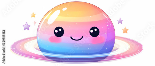 © Pumapala, Fototapeta premium Cute planet smiling, stars background