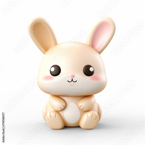© Salnikova Studio, Obraz premium Cute plastic bunny toy stylized 3d render icon in pastel colors illustration isolated on white background