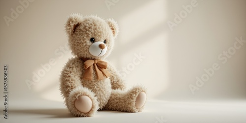 © Chaowarat, Obraz premium Cute Plush Bear Sitting, Peaceful Pose