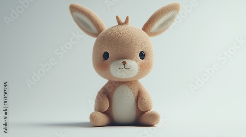 Obraz premium Cute plush rabbit toy sitting with big ears in minimal background