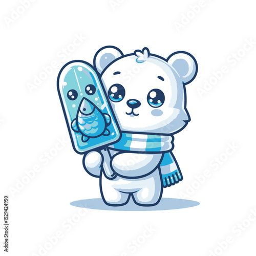 Fototapeta premium Cute polar bear holding a fish-shaped ice pop