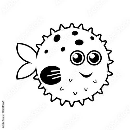 Fototapeta premium Cute Porcupine blow fish line icon. Aquatic animal element icon. Premium...