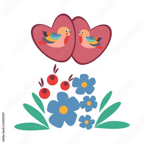 © Ната , Fototapeta premium Cute postcards and posters for the holiday of love, hearts, birds, flowers. Background for the design of a composition of posters, postcards, stickers, decor, greetings. vector posters with flowers.