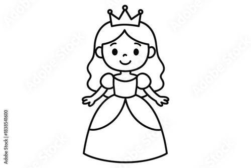 © 4Max, Fototapeta premium Cute princess in crown outline for kids' coloring activities