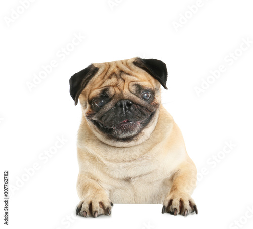 Obraz premium Cute pug dog on white background