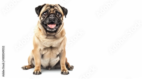 © MinimalZine, Obraz premium Cute Pug Sitting on White Background