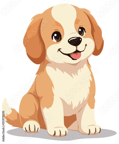 © speedcat, Fototapeta premium Cute puppy character sitting cartoon vector illustration isolated on white background.