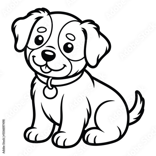 Fototapeta premium Cute puppy sitting Coloring Page, Silhouette, Vector, Illustration, Outline, Logo, White Background.