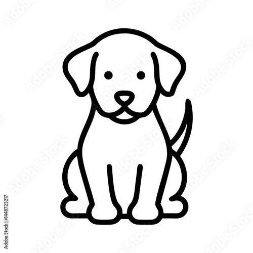 Fototapeta premium Cute puppy sitting illustration, cheerful expression on white background,...