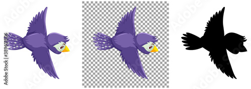 Fototapeta premium Cute purple bird cartoon character