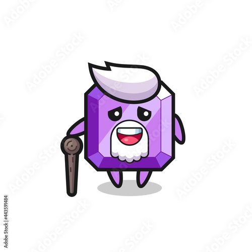 Obraz premium cute purple gemstone grandpa is holding a stick