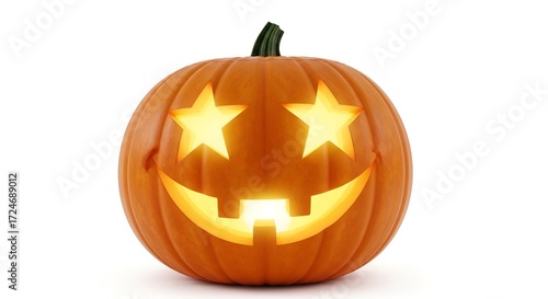 Fototapeta premium Cute purple monster with big eyes and horns playfully peeking from a bubbling black cauldron with glowing green liquid. Whimsical fantasy creature