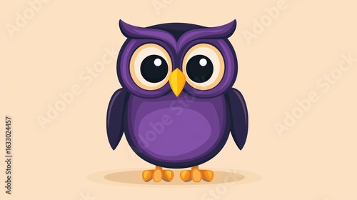 © diska, Fototapeta premium Cute purple owl cartoon character on beige background. Possible use Children's book illustration