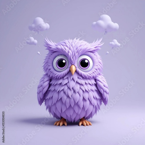 © WSrx, Fototapeta premium Cute Purple Owl with Big Eyes and Thought Clouds on Lavender Background