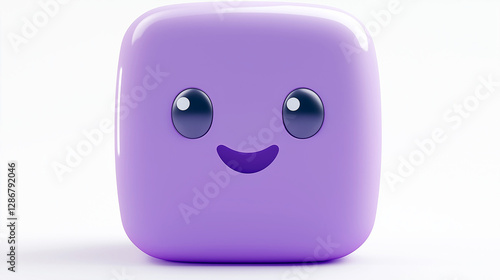 © Andres Mejia, Fototapeta premium Cute purple square character smiling on white background