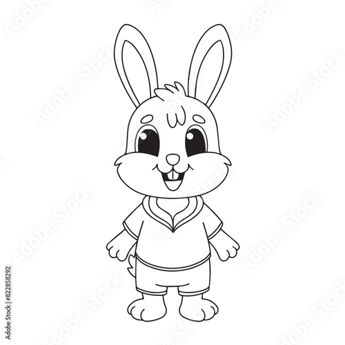 © Artanto, Obraz premium Cute rabbit cartoon coloring page illustration vector. For kids coloring book