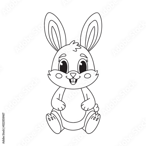 © Artanto, Obraz premium Cute rabbit cartoon coloring page illustration vector. For kids coloring book