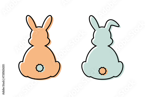 © Mockmenot, Obraz premium Cute rabbit from the back line art. Easter ornament template.