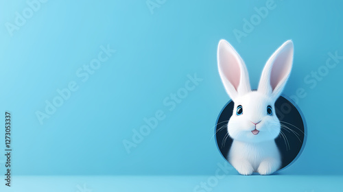 © xuan, Obraz premium Cute Rabbit Peeking Out of a Hole in Blue Tone