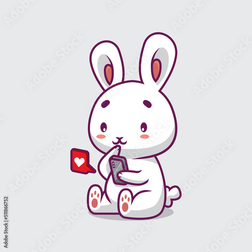Obraz premium Cute rabbit playing phone cartoon illustration