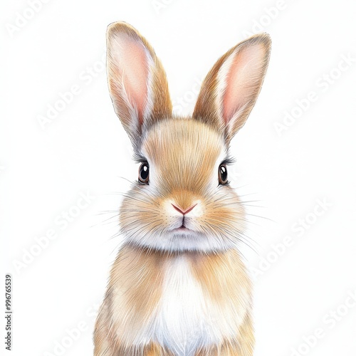 © Template_Design, Obraz premium Cute rabbit portrait on white isolate background.