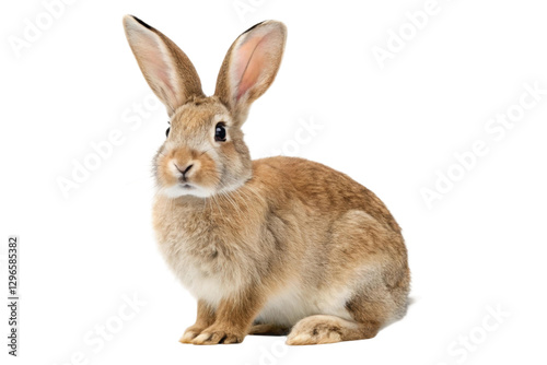 © Vlad, Obraz premium Cute rabbit sitting calmly on a smooth surface while looking curiously at the camera in a bright environment, cut out
