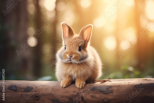 © Golden House Images, Obraz premium Cute rabbit sitting in garden. Ai generative.